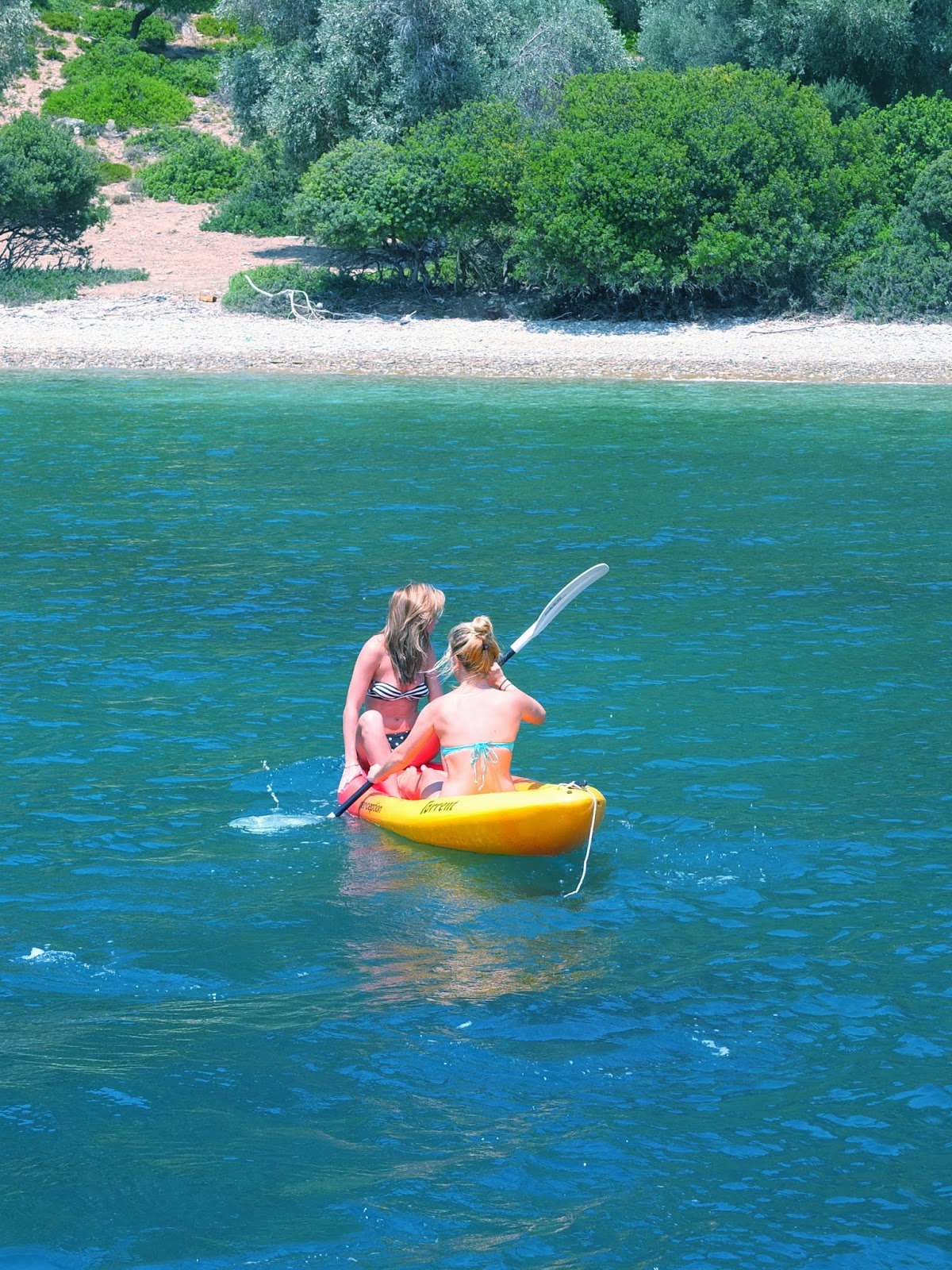 We had stocked up the boat with a variety of cheeses bread and fruits, so we sat on the back of the boat nibbling on pieces of feta cheese (my fav), slices of fresh tomato, bread and the Greek cuisine that is Tsatsiki (yum) whilst looking out to this peaceful paradise.