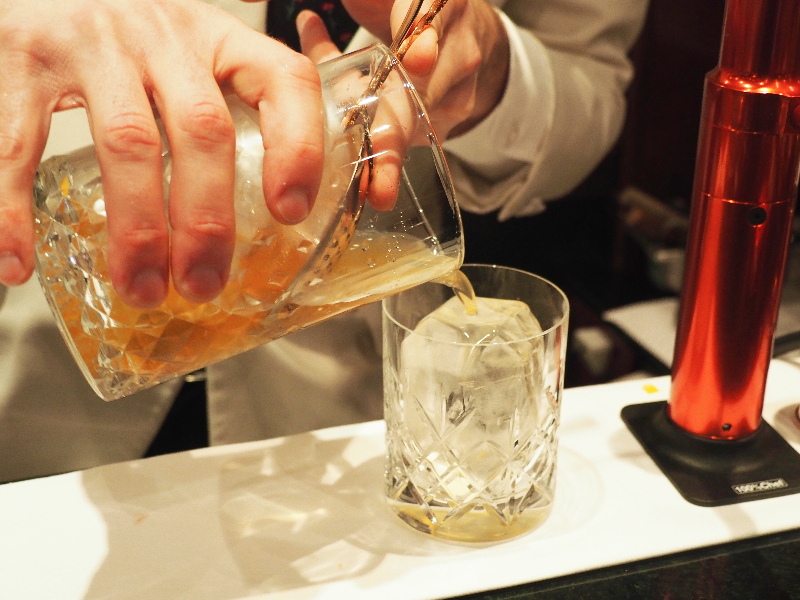 We begun with champagne and a set of complimentary canopes, before perching at the rich mahogany bar and watching the incredible bartenders demonstrate their skills.