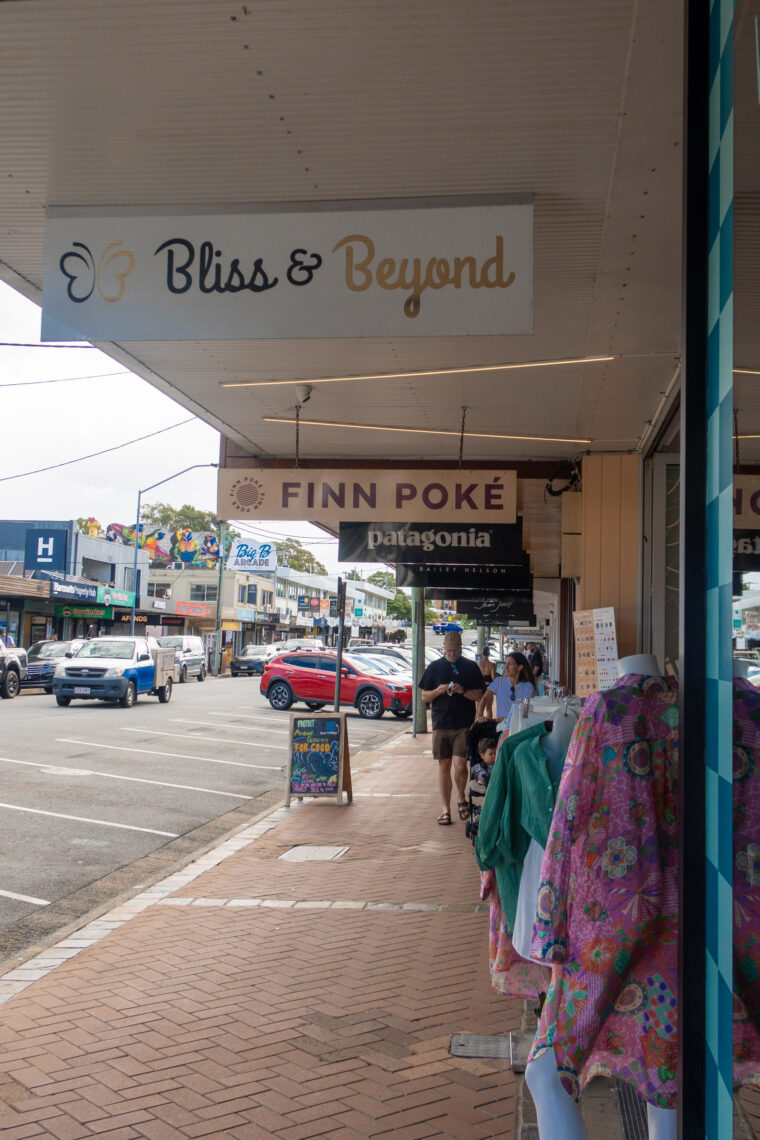 I’d suggest starting your morning slowly with a coffee from Social Brew, Quest Coffee Roasters or Commune, then take your time browsing local Aussie brands and independent boutiques to pick up beachy finds, gifts and souvenirs. James Street is the kind of place where you pop in for a quick coffee and somehow end up staying all morning.