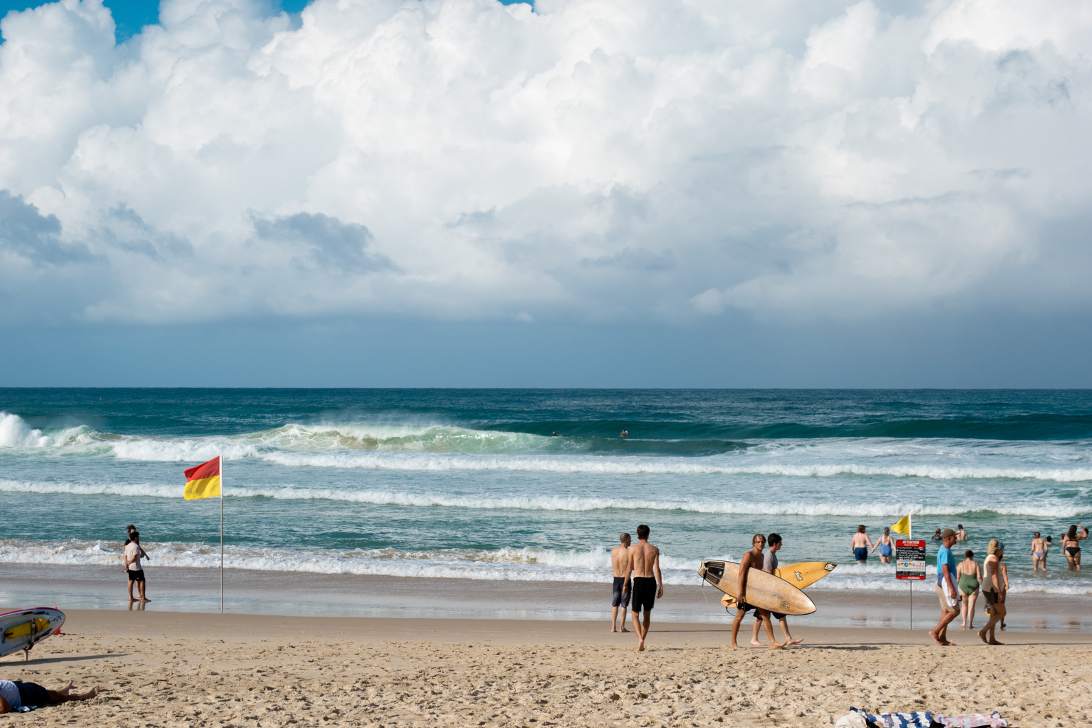 The northern end is great for a more relaxed swim, while closer to Burleigh Point you’ll see surfers riding the famous right-hand break. Lifeguards patrol the main areas, and there are plenty of shaded grassy spots nearby if you want to set up for a picnic or escape the midday sun.