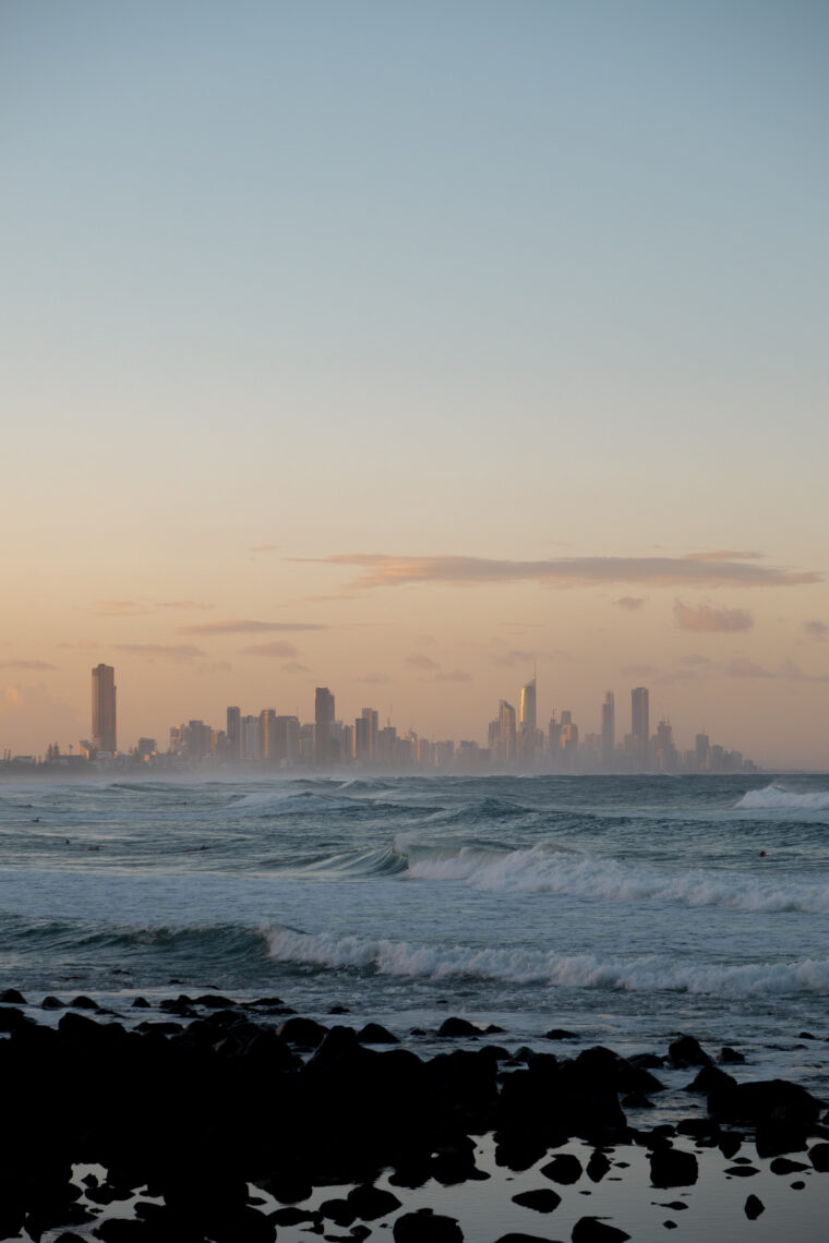 Our recent stay in Burleigh Heads actually timed with a decent Autumn swell (see below) and so we ended up getting a takeaway dinner from The Yiros Shop on James Street and rolled out a picnic blanket on the headland to watch the surf. It was heavenly. There was such a lovely local buzz there too. There’s something about the Gold Coast skyline as a backdrop for the swell that feels so dramatic, right?